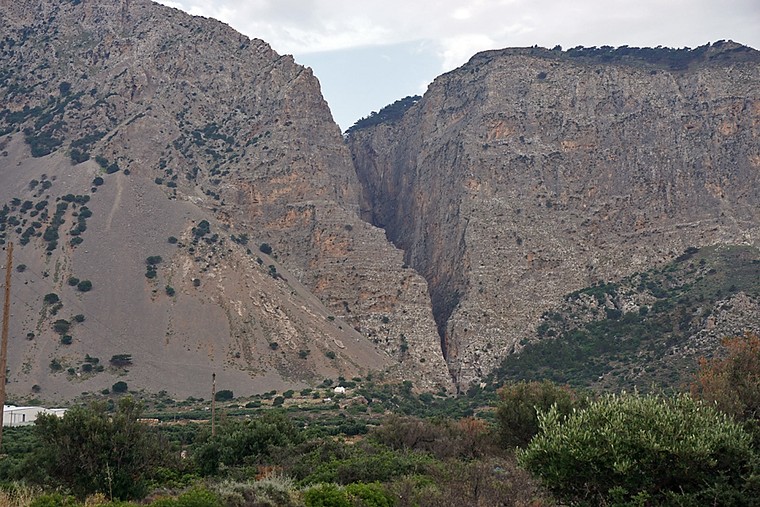 Anschließend fuhren wir das Gebirge hinunter an die Südküste und schauten uns noch die venezianische Festung in Ierapetra an. Die sehr kurvige Bergstraße bot uns wieder wunderschöne Blicke auf die Felsen. Die Straße an der Südküste bis Ierapetra führt kilometerlang durch die Gewächshausplanatgen. Ierapetras Altstadt jedoch war wieder sehenswert. Für den Rückweg nach Kritsá wählten wir den schnellen Weg über die schmalste Stelle Kretas zwischen Ierapetra im Süden und Pacheia Ammos im Norden. Auf dieser Strecke passiert man auch den imposanten V-förmigen Canyon Ha. Von Pacheia Ammos sind wir schließlich über die Old Road nach Kritsá entlang der Küste zurückgefahren.