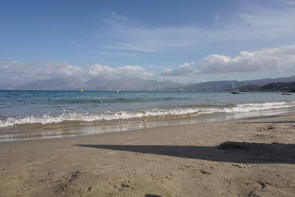 Innerhalb von 10 min liegen zwei offizielle Badestrände (Almyros und Ammoudara). Dort warten auf den Badeurlauber Sonnenliegen, Schirme, Jetskis und sonstige Wasserspaßaktivitäten. Weitere Sandstrände und Buchten mit azurblauem, sauberem Meerwasser und romantischen Felsen liegen in nur 15 Minuten Entfernung. Der bekannte Badeort Elounda ist ca. 20 Autominuten entfernt.